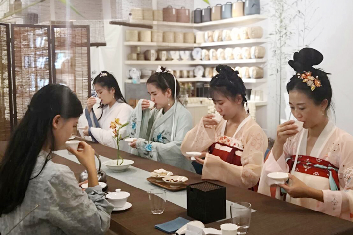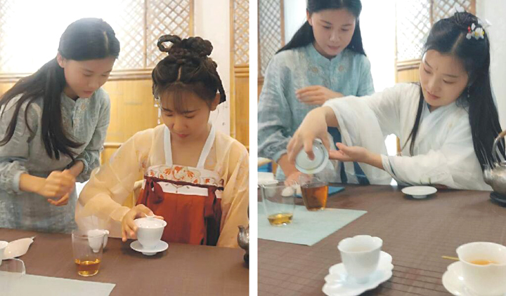 参加活动的员工身着飘逸的汉服,美轮美奂,走进活动现场,似乎进入了时空隧道。活动中,公司邀请专业授课老师,对汉文化揖手礼和茶桌礼仪进行了培训指导。
