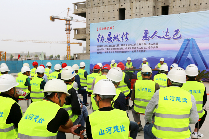 9月26日,山河建设集团河南公司2020年“质量月”活动总结暨项目管理经验交流会在蓝光王府井商业小镇项目部举行,对“质量月”各项活动开展情况与成效进行通报,并通过经验交流助推项目管理水平不断提高。河南公司副总经理詹成义出席活动。