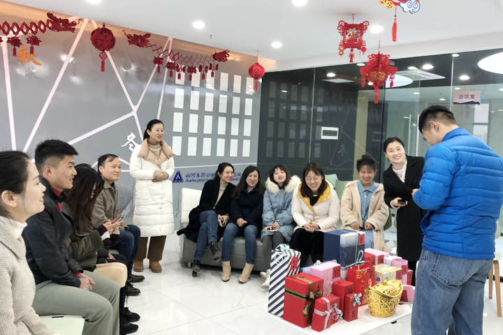 在阵阵欢笑声中,跨年活动在员工风采展示区拉开序幕,活动的“重头戏”——交换礼物随之开始。大家事先准备好的精美礼物整整齐齐地码在桌子上,并一一编上号码。通过抽奖的方式,每个人都收到了属于自己的一份惊喜。拆开礼物的一刹那,发自内心的喜欢溢于言表。参加活动的员工纷纷表示,这是来自同事的真心祝福,寓意深刻,是最难忘的一份礼物。