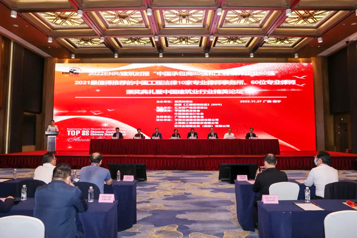 11月27日,由《建筑时报》和美国《工程新闻记录》(ENR)合作举办的2022ENR/建筑时报“中国承包商80强和工程设计企业60强”颁奖典礼在广西南宁举行。