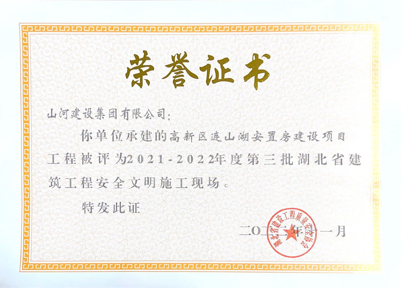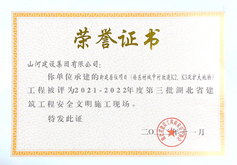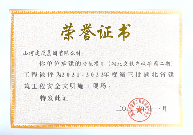 山河集团三项工程获评湖北省建筑工程安全文明施工现场